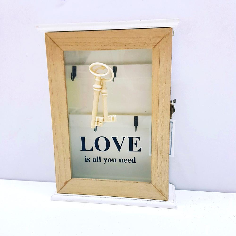 PORTA CHAVES MDF DECOR. C/ 5GANCHOS 19X26X6 DES LOVE BEIJE