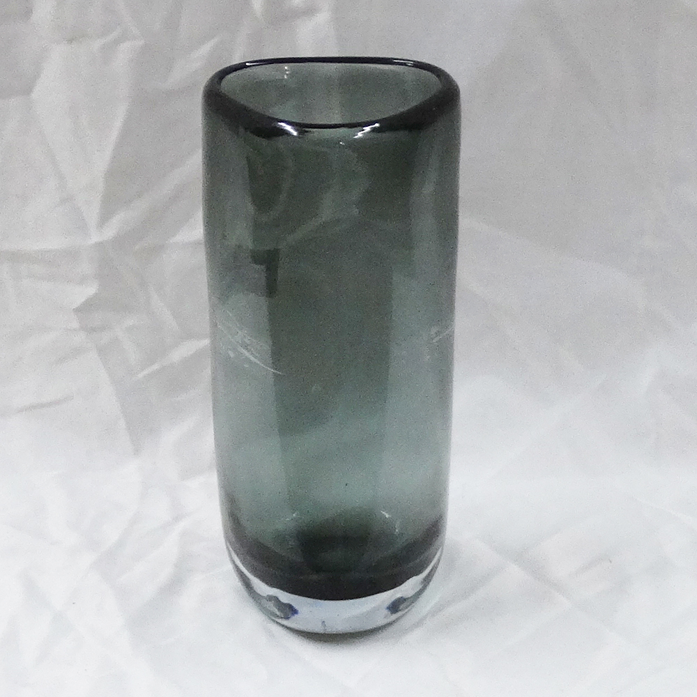 VASO DE VIDRO DECORATIVO TRIANGULAR 12X27CM CINZA